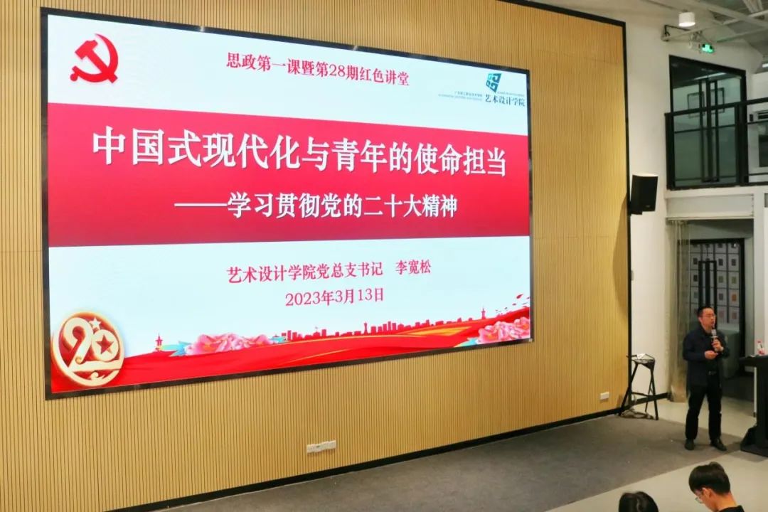 2023年3月13日,艺术设计学院在国际数字创意谷报告厅举行思政第一课暨第28期红色讲堂。我院党总支书记李宽松教授为21级入党积极分子、学生干部进行了专题授课。