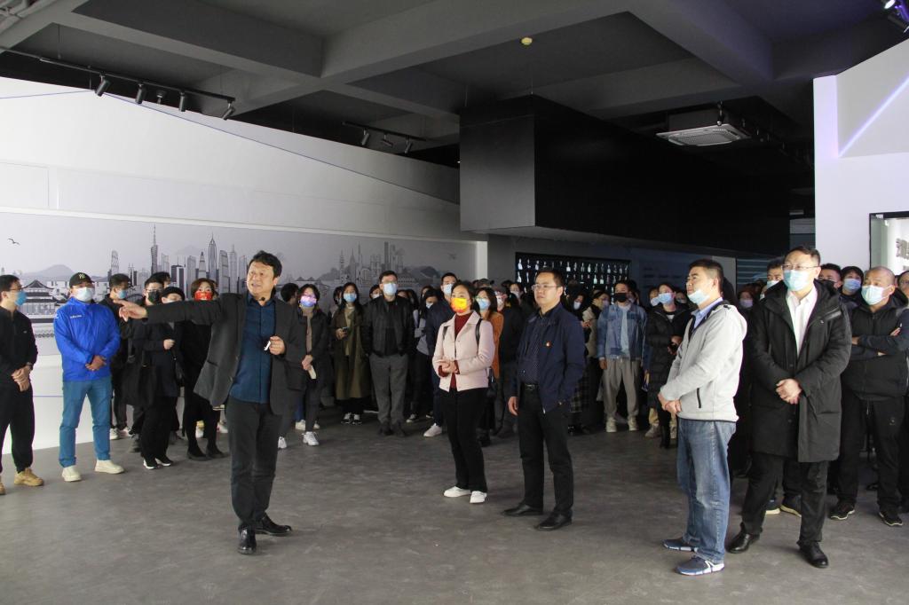 会前,全体教职工共同前往我院国际数字创意谷B区参观学习,桂元龙院长为教职工讲解了各个场地的建设情况和功能定位。