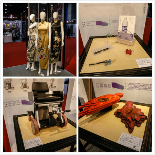 艺术设计学院“工学商一体化”项目制课程成果作品在本届交易会上集中亮相,共有14个专业100多件套作品参展,其中展板68块,实物44件,共15个展位。作品种类丰富,涵盖了平面视觉类、产品设计类、环境艺术类、工艺美术类、服饰服装类、动漫数字类。精美的设计作品吸引了大批行业专家、企业代表、参会嘉宾驻足观看。在本届展会上,经专家组评审,我院参展作品斩获各类奖项81个,获奖数量再创新高。其中一等奖10项,二等奖17项,三等奖24项,优秀奖30项。