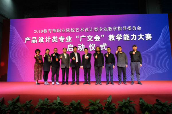 在大会现场,由产品设计专门委员会承办的产品设计类专业“广交会”教学能力大赛正式启动。产品设计专门委员会主任委员桂元龙教授与教育部职业院校艺术设计类专业教学指导委员会秘书长张来源教授等9名教指委委员一起见证了本次大赛的启动。大赛旨在对接国家教学标准,落实《国家职业教育改革实施方案》,促进教师的综合素质、教学能力和技术技能水平全面提升,更好地适应信息时代的教学模式和评价模式改革需要。大赛预计将于2020年5月左右结束。