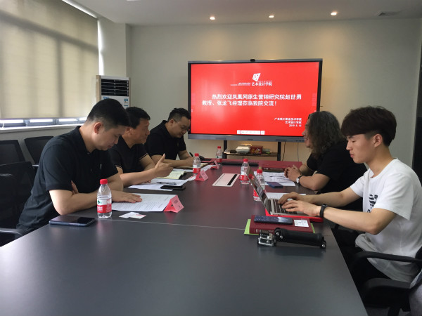 2019年5月15日天津财经大学珠江学院艺术学院院长,青春Bang未来契约YoungSDG赛事项目召集人赵世勇教授与凤凰网原生营销研究院项目经理张龙飞一行来访广轻艺术设计学院,我院桂元龙院长及相关专业负责人在敬师楼308会议室热情接待了来访嘉宾。桂元龙院长向两位嘉宾介绍了我院的发展历程,及“工学商一体化”产教融合人才培养模式改革的实践情况。