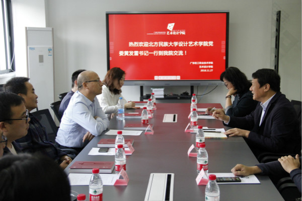 2018年11月27日,北方民族大学设计艺术学院党委书记黄发雷一行莅临我院考察交流,我院桂元龙院长、党总支李宽松书记及相关专业群负责人在敬师楼会议室热情接待了来访嘉宾。